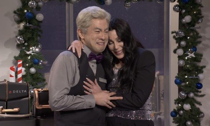 Poi, invece di un cameo di Lorne Michaels, l’ospite musicale della serata, Cher, che il comico definisce la sua icona personale e il suo sogno. SNL l’ospite