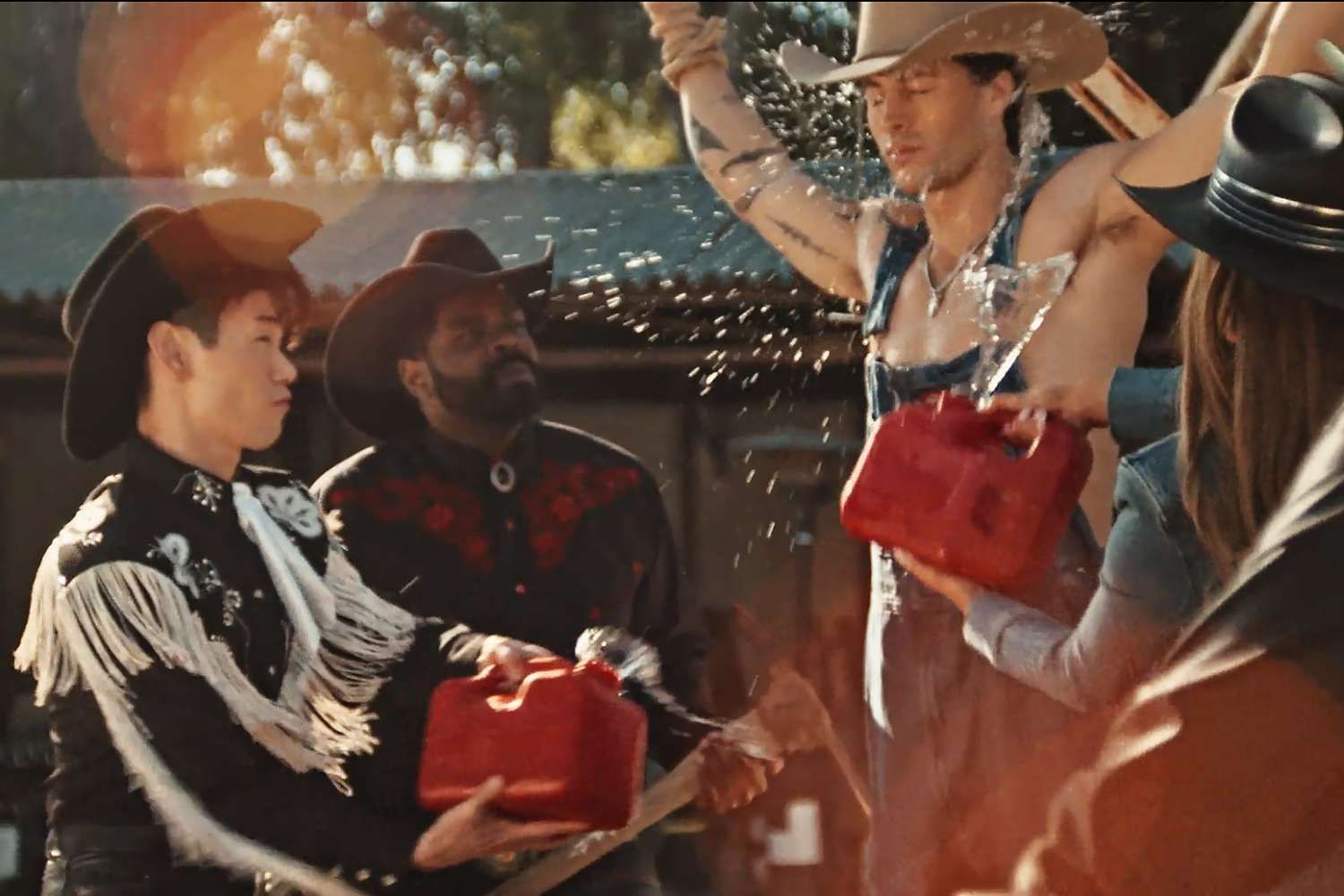 Eric Nam, Rob Rausch e Maura Higgins nel video musicale di Nam “How the Fire Started”.