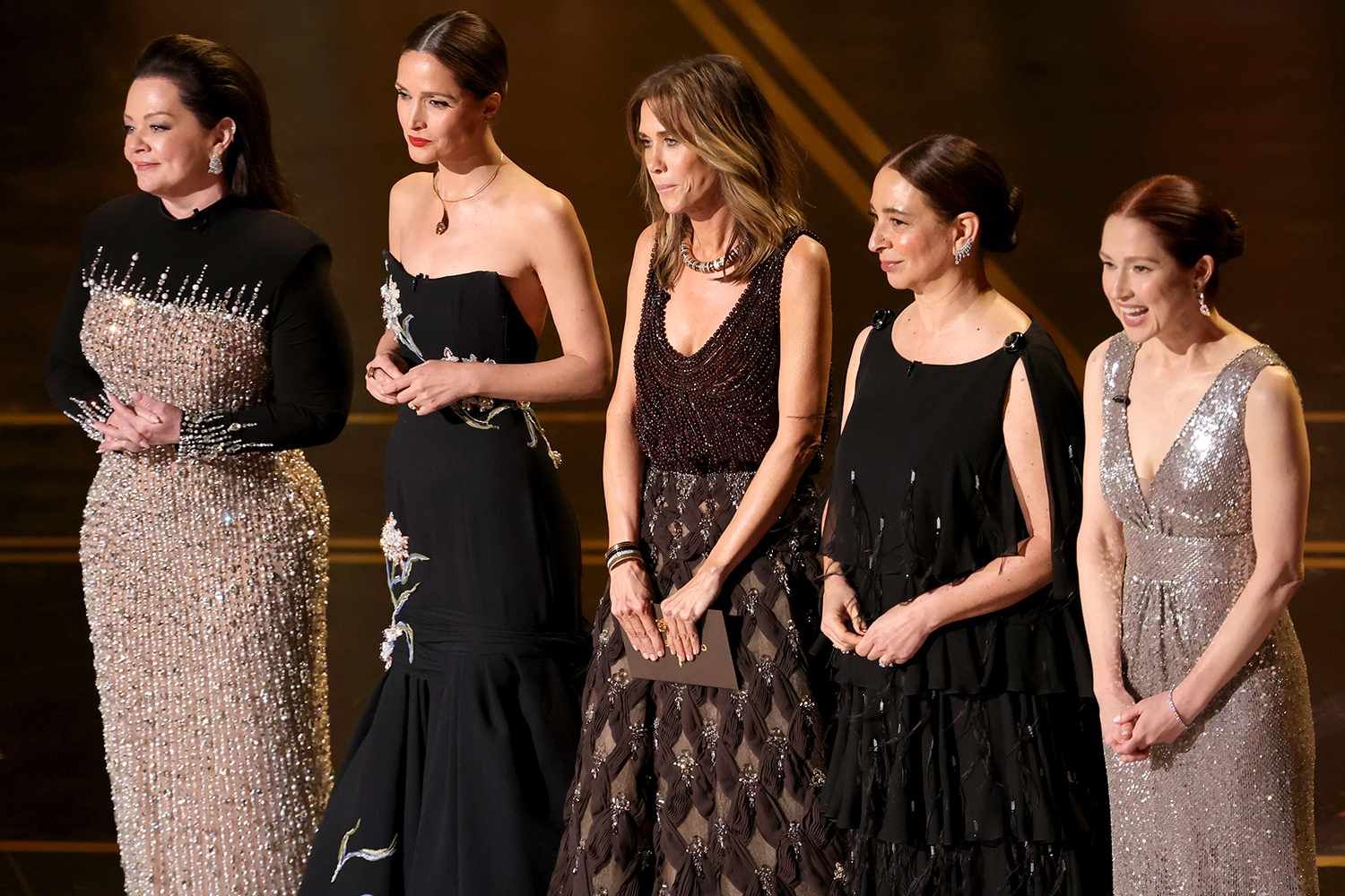 La riunione era per una causa altrettanto buona: celebrare il quindicesimo anniversario dell’iconica commedia guidata da donne che insegnava a tutti a non provare nuovi cibi prima dell’importantissimo appuntamento per la prova del vestito. Le star Rose Byrne, Kristen Wiig, Melissa McCarthy, Maya Rudolph ed Ellie Kemper sono salite insieme sul palco dell’evento di domenica sera, dove sono state accolte da fragorosi applausi.