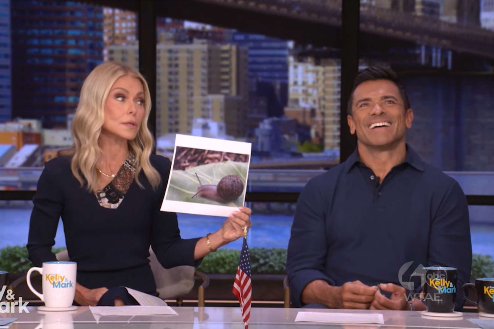 I co-conduttori “dal vivo” reagiscono scioccati mentre si impegnano nel comportamento sensuale della lumaca.