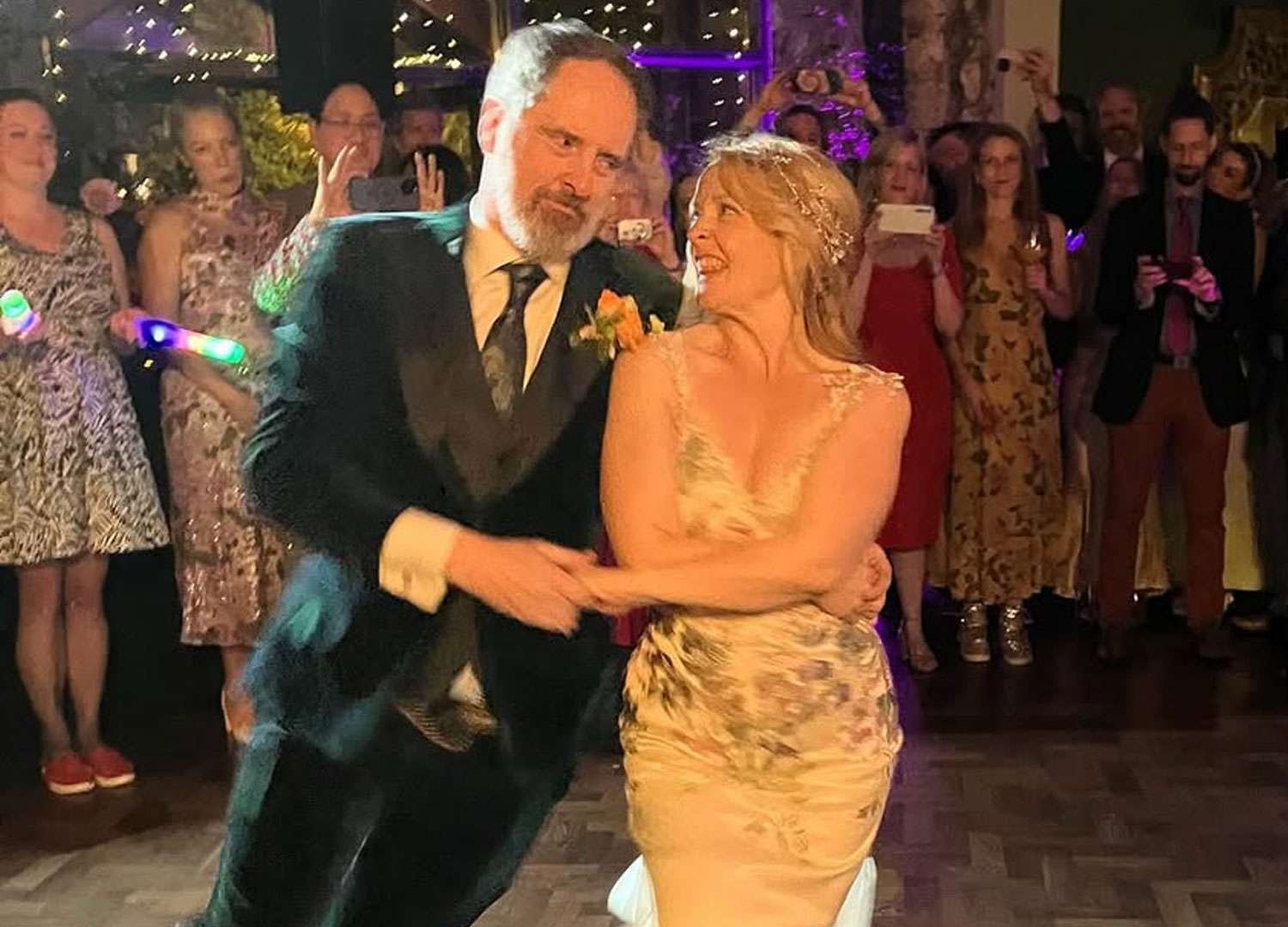 Le immagini condivise sia dalla sposa che dalla sposa, ottimista nei panni della signora Ledbater nel 2021, raffigurata nella serie vincitrice di Amy-Bi, li ritraevano nel loro abito da sposa, stavano di fronte a Jason Sudikis e camminavano nelle mani di Eilee e spegnevano la rabbia sulla pista da ballo.