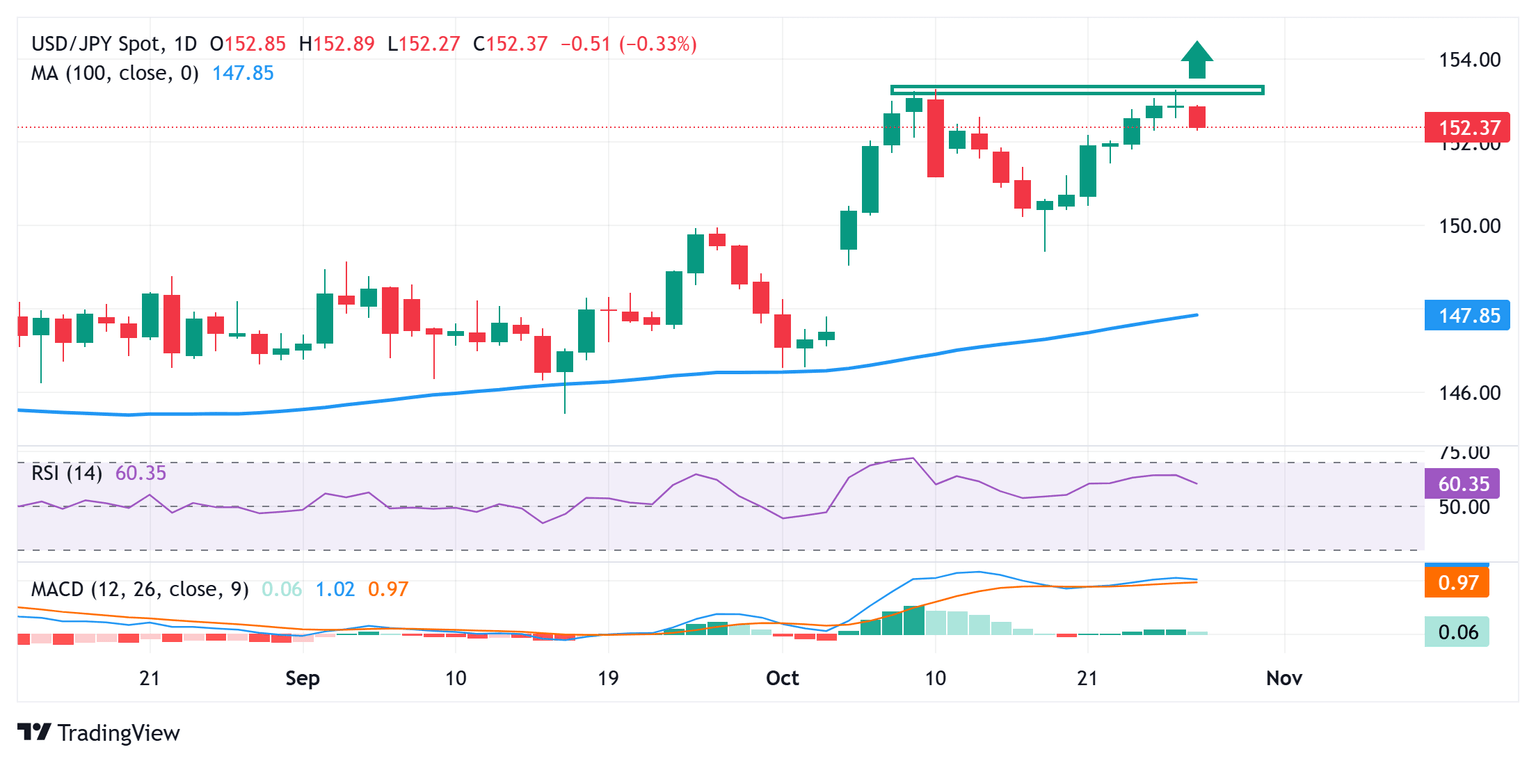 La coppia USD/JPY deve indebolirsi ulteriormente sotto quota 152,00 per supportare la tesi di perdite maggiori