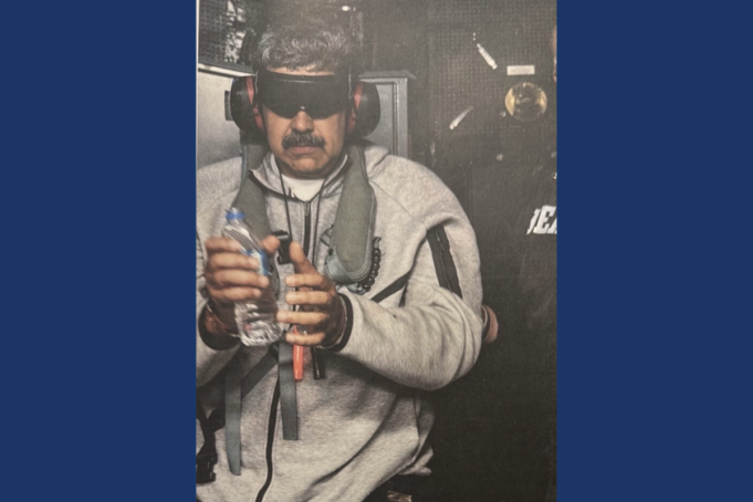 Nella foto, Maduro indossa pantaloni della tuta e una felpa, ma soprattutto è bendato e indossa una specie di maschera per gli occhi e cuffie antirumore resistenti che bloccano il rumore. Il leader venezuelano ha in mano anche una bottiglia d’acqua, dalla quale sembra stia bevendo.