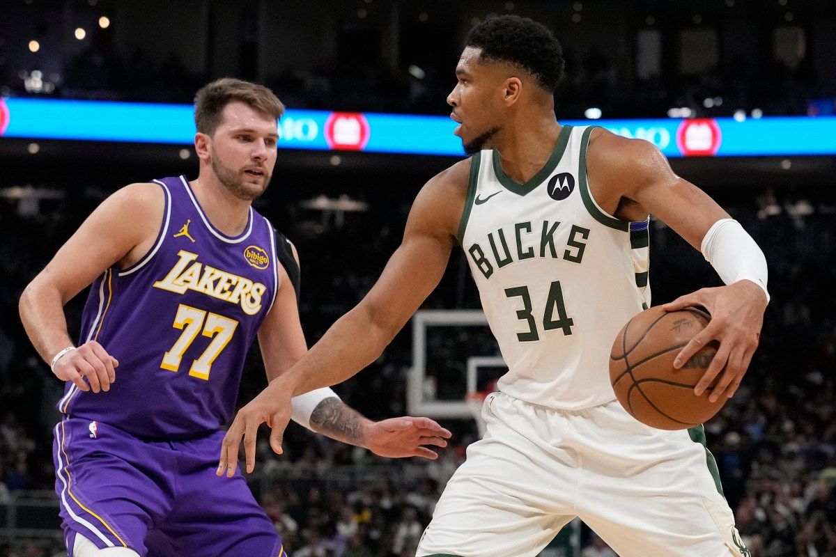 Giannis Antetokounmpo e i Milwaukee Bucks affrontano Luka Doncic e i Los Angeles Lakers in questo incontro NBA alla Crypto.com Arena venerdì sera.