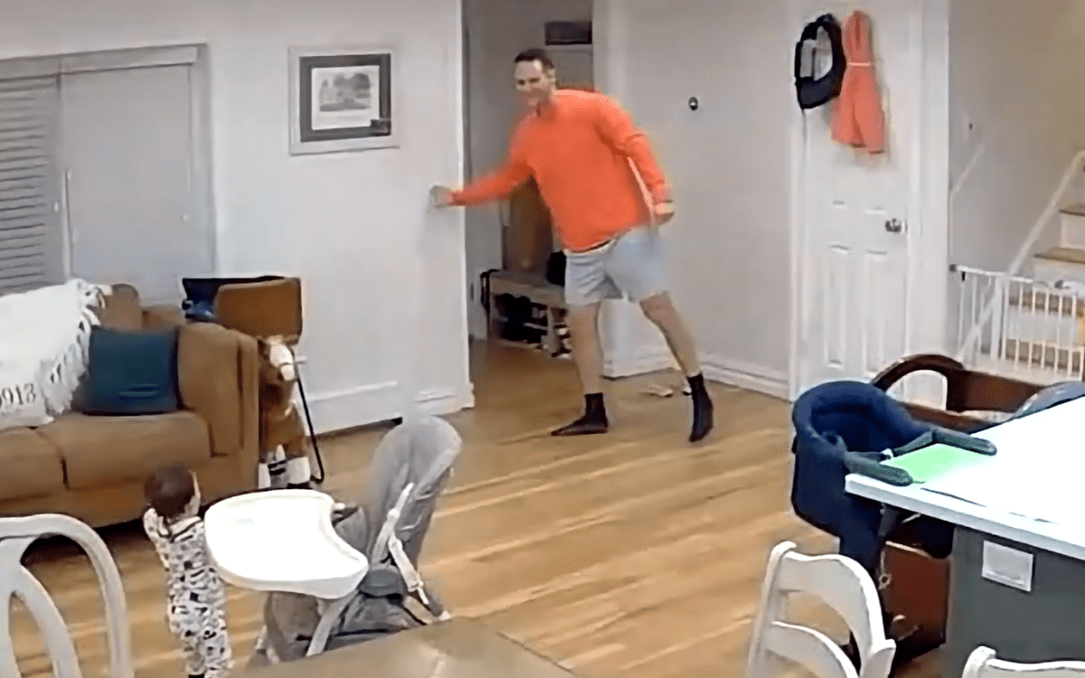 Anthony, di Blauvelt, New York, stava vivendo i momenti di genitorialità quando accadde qualcosa di magico. È stato un momento che Anthony ha catturato dalle telecamere di sicurezza interne in prima fila e da allora è stato guardato innumerevoli volte dall’orgoglioso papà.