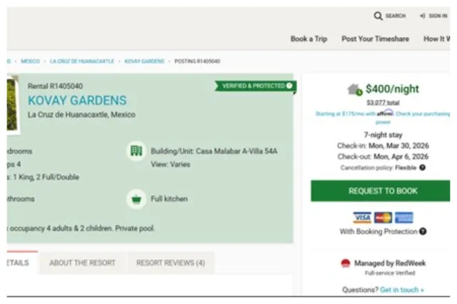 Newsweek Trova annunci pubblicizzati sul mercato della multiproprietà Redwick e sul sito web di noleggio a breve termine Airbnb.