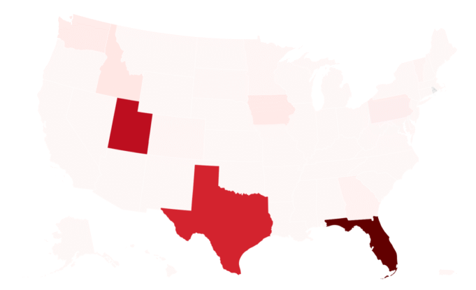 Secondo il rapporto, la maggior parte degli esempi si trovavano in soli tre stati: Florida, Texas e Tennessee.