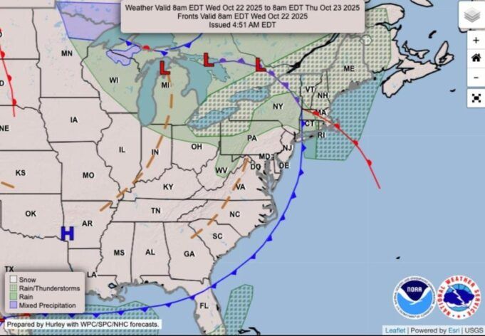 Una mappa inclusa nel post mostrava più di una dozzina di stati che si aspettano impatti dal sistema delle tempeste. Sono possibili rovesci in Michigan, Indiana, Ohio, West Virginia e Connecticut, con piogge miste in Wisconsin e Minnesota. Nel frattempo, sono possibili rovesci e temporali in Ohio, Pennsylvania, New York, Vermont, New Hampshire, Massachusetts, Maine e Rhode Island.