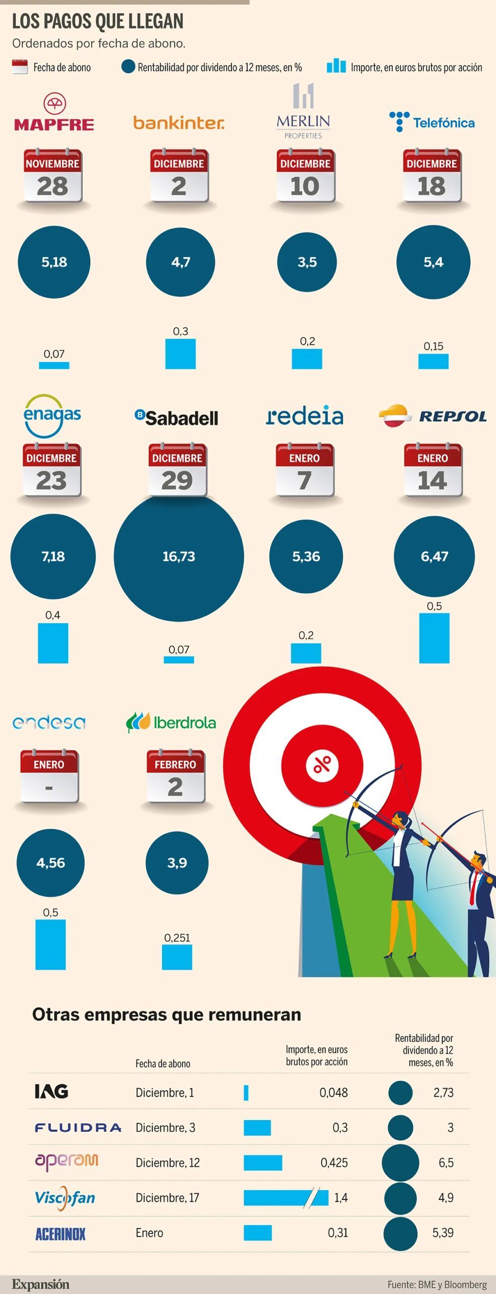 15 società della Borsa spagnola pagheranno i loro azionisti entro i prossimi due mesi. Dieci di questi si distinguono con rendimenti compresi tra il 3% e il 17%. Da leggere
