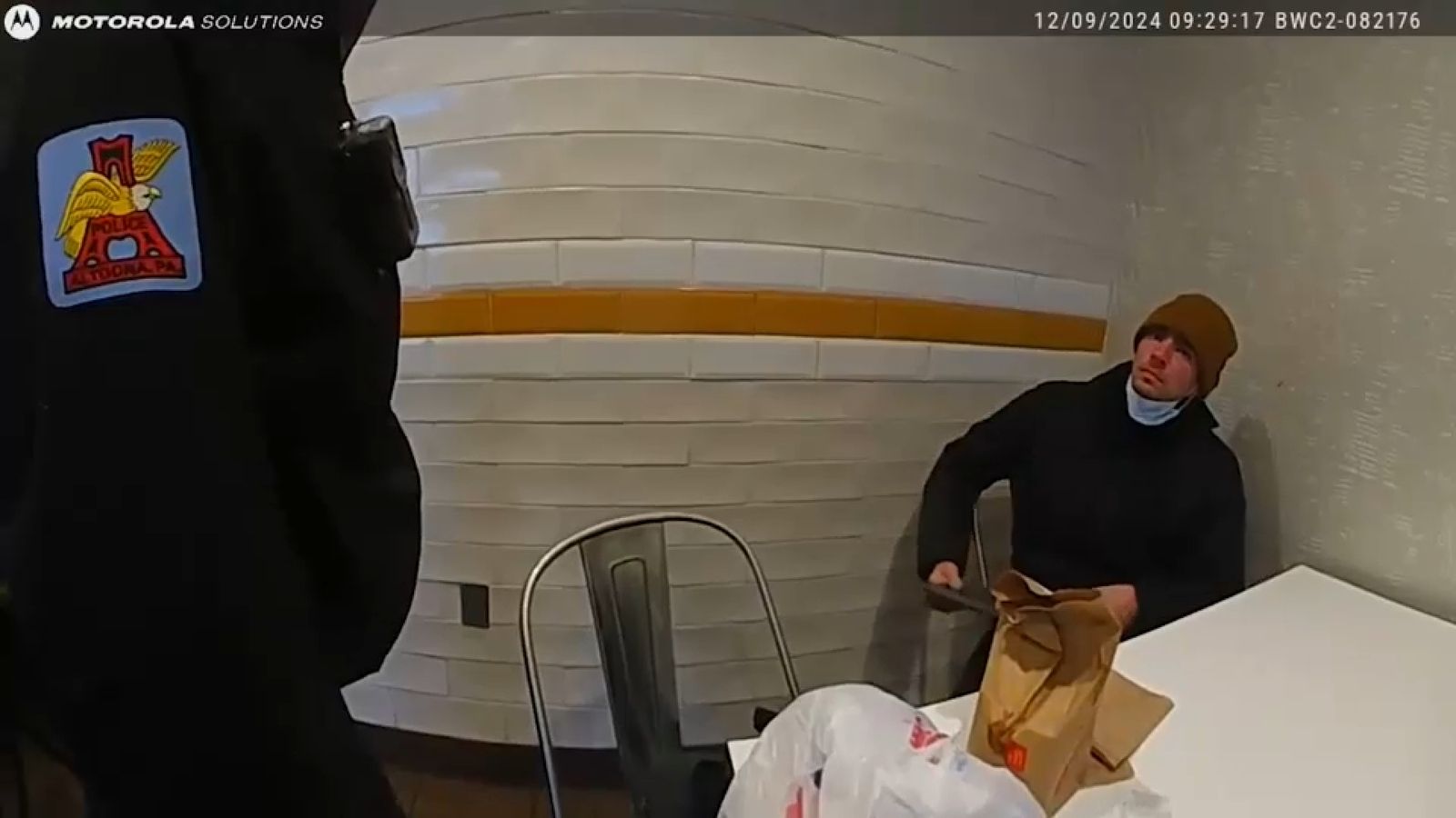 I giurati hanno anche visto le riprese della telecamera dei primi due agenti che hanno risposto alla chiamata dei servizi di emergenza. Sul banco dei testimoni c’era uno di quegli agenti, Steven Fox, che si vede nel video leggere a Mangione i suoi diritti su Miranda, ammanettarlo e perquisire il suo zaino.