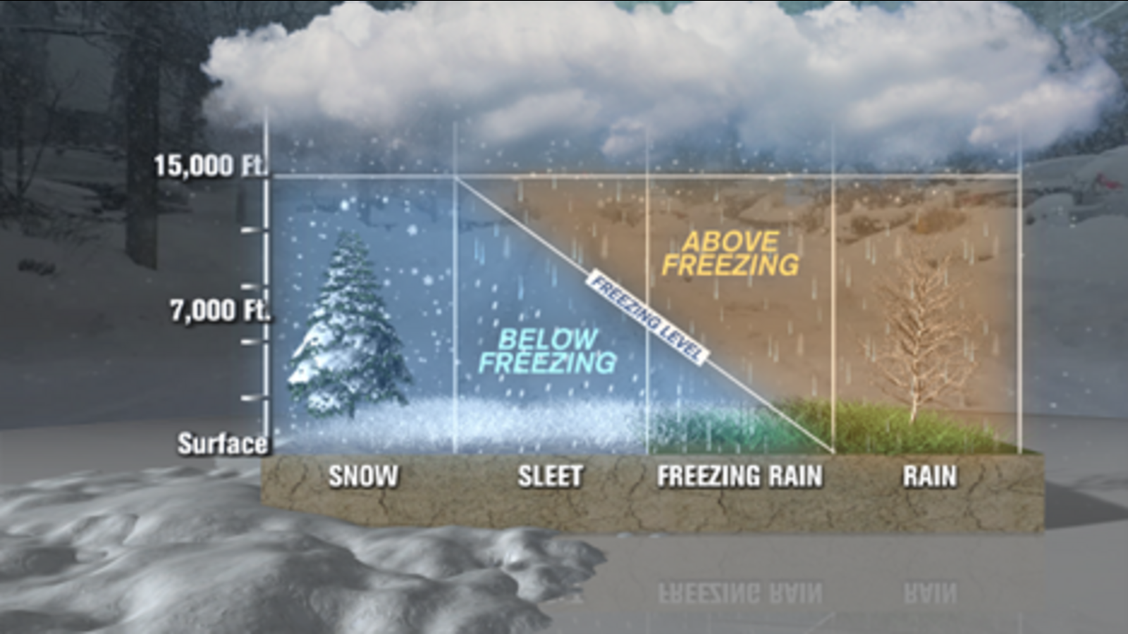 RALEIGH, Carolina del Nord (WTVD) — Nella Carolina del Nord centrale si verificano quattro tipi di precipitazioni invernali: pioggia, neve, nevischio e pioggia gelata. Come si verificano queste forme di precipitazione?
