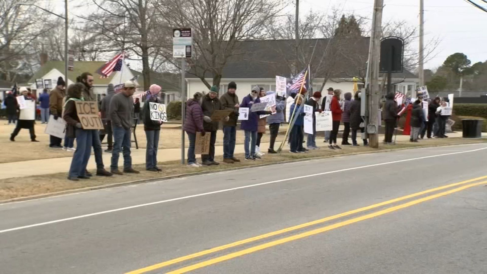 CLAYTON, Carolina del Nord (WTVD) — Decine di persone si sono riunite per una manifestazione anti-ICE nella contea di Johnston, chiedendo la “chiusura totale dell’ICE”.