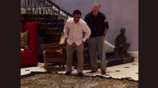 Nella foto, che proviene da documenti ampiamente distribuiti rilasciati dal Dipartimento di Giustizia degli Stati Uniti (DOJ), i due sembrano guardare un oggetto su quello che si pensa sia il Kiswah, il tessuto che copre la Kaaba. Nella foto, potete vedere i due in piedi fianco a fianco sotto una scala, mentre guardano quello che si pensa sia il tessuto Kiswah.