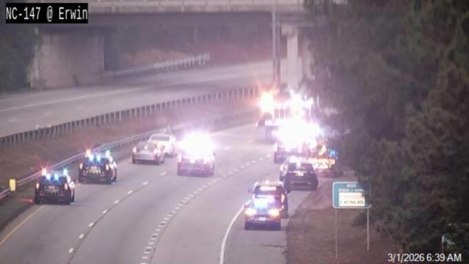 La strada è chiusa vicino all’uscita 4B (Swift Ave). NCDOT ha detto La riapertura della strada è prevista alle ore 9.00