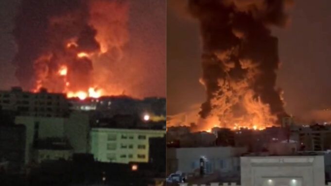 L’attacco ha scatenato enormi fiamme che si sono alzate nel cielo notturno. Le riprese video ampiamente diffuse sui social media mostrano una gigantesca palla di fuoco accompagnata da un denso fumo nero visibile da varie parti della città.