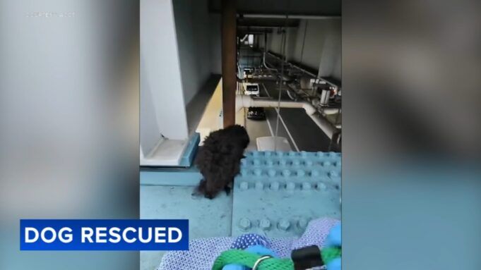 FILADELFIA- Un piccolo cane è stato salvato dopo essere rimasto bloccato su una trave di supporto dei binari del treno SEPTA a West Philadelphia sopra la strada.
