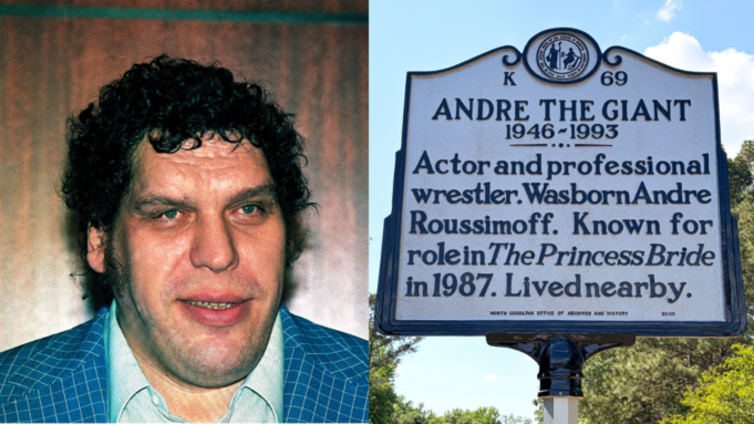 L’indicatore della contea di Richmond sulla NC Highway 73 e sulla Old NC Highway 220 recita semplicemente “Andre The Giant. 1946-1993. Attore e wrestler professionista. Nato Andre Roussimoff. Conosciuto per il suo ruolo in La principessa sposa nel 1987. Viveva nelle vicinanze”.