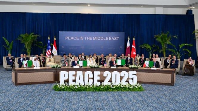 Tutti i leader nazionali presenti al vertice hanno scattato una foto di gruppo dopo aver scattato una foto con il presidente Trump. Nell’occasione, il presidente Prabowo era in prima fila insieme al presidente francese Emmanuel Macron e al vicepresidente degli Emirati Arabi Uniti (PEA), Sheikh Mansour bin Zayed Al Nahyan.