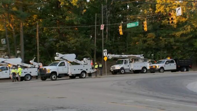 ABC11 Eyewitness News è sul posto e segnala l’abbattimento di linee elettriche e semafori.