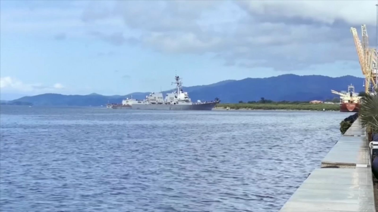 L’enorme nave da guerra rimarrà a Trinidad fino a giovedì in modo che entrambi i paesi possano condurre esercitazioni di addestramento, hanno detto funzionari governativi della nazione insulare gemella e degli Stati Uniti.