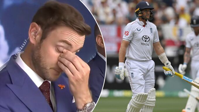 Sapendo chiaramente cosa stava succedendo davanti ai suoi occhi, Broad si è immediatamente messo la testa tra le mani mentre il co-commentatore Matthew Hayden lo ha messo all’interno della scatola.