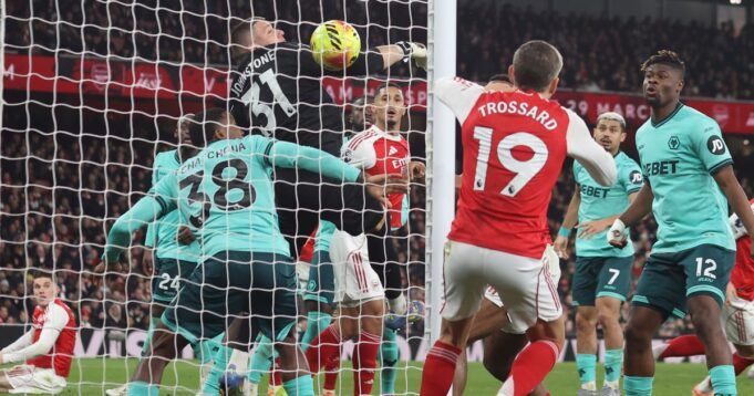Sabato sera l’Arsenal ha ottenuto un’emozionante vittoria all’ultimo minuto sui Wolves. Un colpo di testa nel finale di Gabriel Jesús viene inavvertitamente deviato dallo sfortunato Yerson Mosquera, salvando i rossori dell’Arsenal.