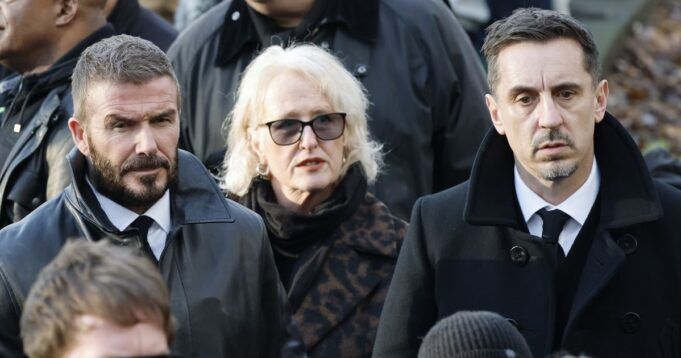 Sir David Beckham e Gary Neville erano tra le persone in lutto che hanno partecipato al funerale della leggenda degli Stone Roses Gary ‘Mani’ Mounfield presso la Cattedrale di Manchester.