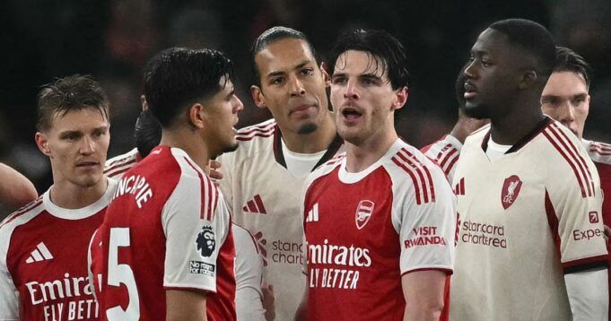 Considerando la pesante preparazione pre-partita di questa partita che ha portato gol e punti critici, abbiamo dovuto aspettare un’apertura in gran parte noiosa di 35 minuti prima che Virgil van Dijk e Declan Rice si scontrassero e dovessero essere separati dopo che il centrocampista dell’Arsenal ha continuato a giocare nonostante Jeremie Frimpong fosse caduto infortunato nell’area di rigore dei Gunners.