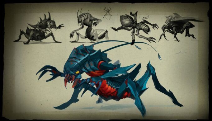La Weaver è forse il personaggio più forte di Dota 2 per quanto riguarda la sua storia. Skitskurr, un maestro tessitore, esseri cosmici incaricati di riparare fratture e anomalie nel tessuto stesso della realtà. Disonorato e rifiutato dopo aver tentato di creare un cambiamento invece di ripararlo, fu isolato dalla sua specie.
