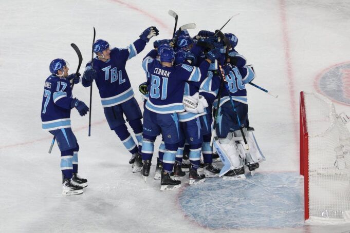 Nikita Kucherov ha segnato e ha ricevuto tre assist, mentre Brandon Hagel ha segnato un gol e due aiutanti. Darren Raddysh ha prodotto un goal power-play e un assist, e Oliver Bjorkstrand e Nick Paul hanno segnato in power play per aiutare i Lightning a vincere la loro prima partita casalinga all’aperto nella storia della franchigia.