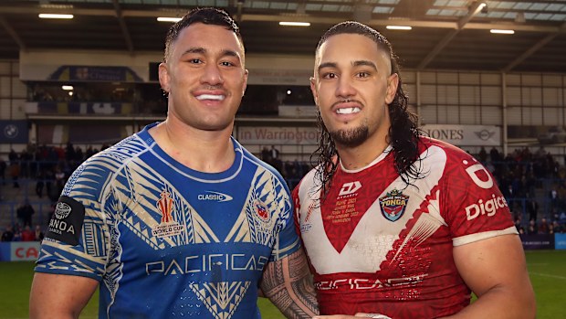 Jaydn Su’Aa e Keaon Koloamatangi erano compagni di squadra e rivali. Immagini Getty per RLWC