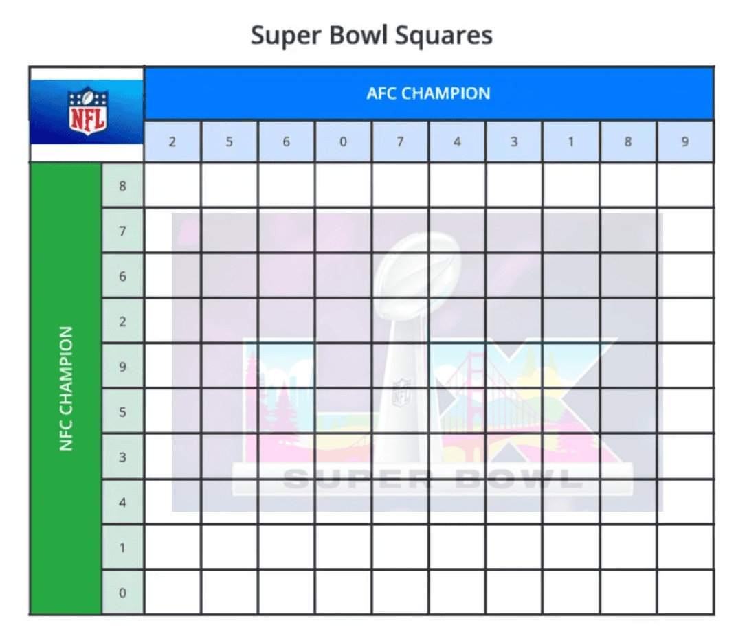 Mancano pochi giorni al Super Bowl LX. Domenica 8 febbraio 2026, al Levi’s Stadium, dove i Seattle Seahawks (campione NFC) affrontano i New England Patriots (campione AFC) nella rivincita del Super Bowl XLIX. Che tu stia organizzando una festa, gestendo un pool di uffici o unendo gli amici a distanza, insegnare a tutti come giocare a Super Bowl Squares (noto anche come football Squares o Box Pool) è il gioco perfetto, poco impegnativo e molto divertente. Non è necessaria alcuna conoscenza approfondita del calcio. Tutto ciò che serve è fortuna e una griglia 10×10.