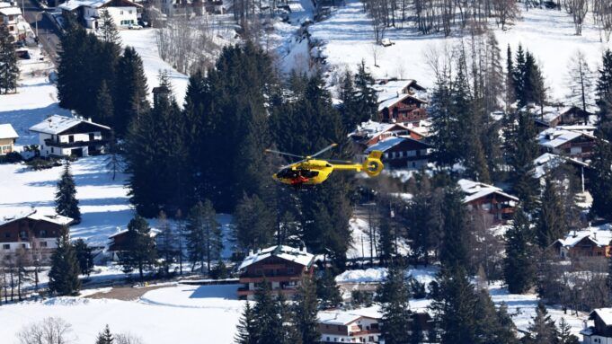 Lindsey Vonn degli Stati Uniti viene trasportata in elicottero in elicottero dopo essersi schiantata durante una gara di sci alpino femminile alle Olimpiadi invernali del 2026 a Cortina d’Ampezzo, Italia, domenica 8 febbraio 2026.