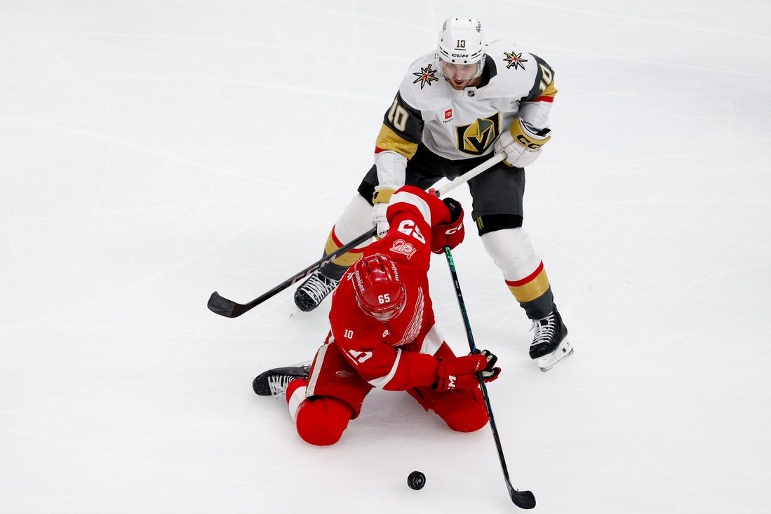 Tomas Hertl ha segnato un gol power-play 4 contro 3 al 2:11 dei tempi supplementari mentre i Vegas Golden Knights in visita si sono ripresi da uno svantaggio di due gol nel terzo periodo per sconfiggere i Detroit Red Wings 4-3 mercoledì.