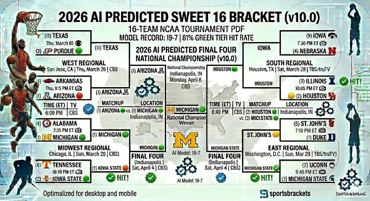 SCARICA IL SUPPORTO AI: PDF stampabile del 2026 AI previsto Sweet 16 (v10.0) (solo parentesi)