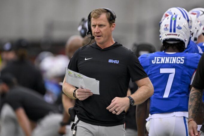 Jennings era come Houdini mentre cercava di uscire dai guai nel backfield prima di trovare Johnson per una presa selvaggia da 42 yard e correre per un touchdown che ha ampliato il vantaggio di SMU a 24-7 con 8:22 da giocare nel terzo quarto.