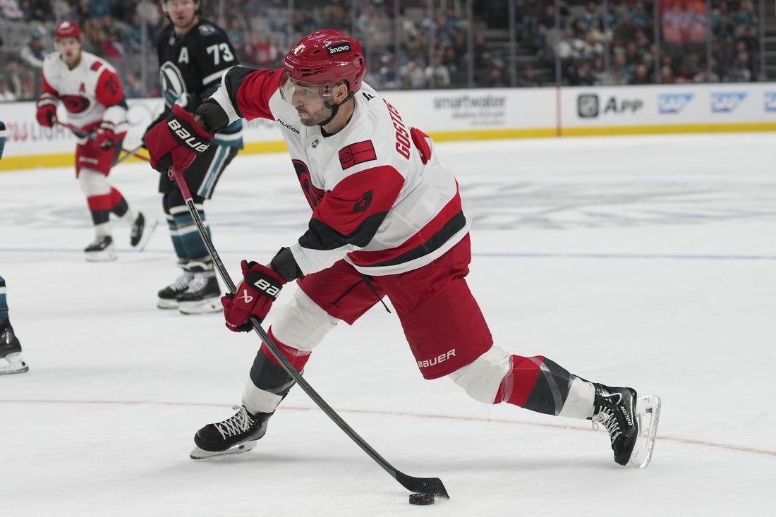 Sean Walker, William Carrier, Eric Robinson, Shayne Gostisbehere e Jackson Blake hanno segnato gol e Logan Stankoven ha fornito due assist per Carolina, che ha esteso la sua serie di vittorie consecutive contro gli Sharks a otto partite dalla sconfitta per 2-1 ai supplementari il 22 novembre 2021.