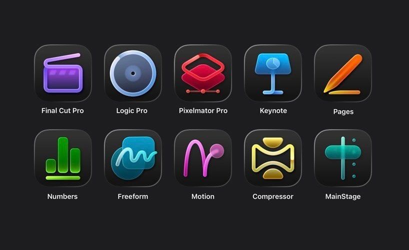• App professionali: Strumenti standard del settore come Final Cut Pro, Logic Pro, Pixelmator Pro, Motion, Compressor e MainStage.