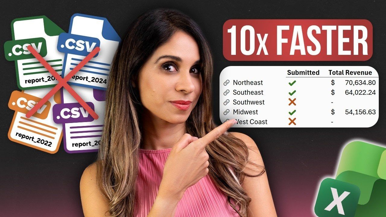 Lavorare con file CSV in Excel spesso comporta importazioni ripetute e aggiornamenti manuali, che possono richiedere molto tempo ed essere soggetti a errori. Leela Gharani presenta una soluzione pratica utilizzando la funzione “IMPORTCSV” di Excel, che ti consente di collegare dinamicamente i file CSV direttamente nella tua cartella di lavoro. Ad esempio, puoi impostare menu a discesa per passare da un file all’altro senza modificare le formule, garantendo che i tuoi dati rimangano aggiornati e organizzati. Questo approccio semplifica attività come il monitoraggio degli invii o delle entrate, riducendo al tempo stesso il rischio di errori nel processo di gestione dei dati.